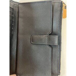 Michael Kors Black Saffiano Leather Wallet Wrist Strap Card Slots 2 zip pockets. This wallet is ready to carry your money, cards, and... life? Well, maybe not life, but it will be your trusty sidekick for sure.