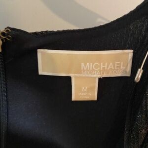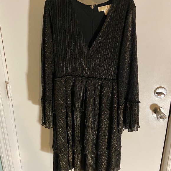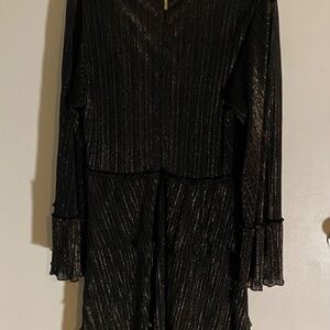 Size medium black shimmery long sleeve knee length gently worn but like new.
