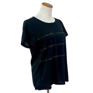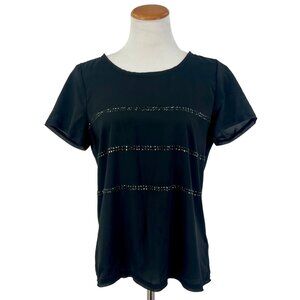 Michael Kors Black Short Sleeve Rhinestone Embellished Top