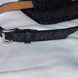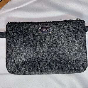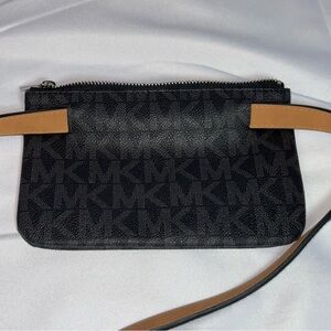 Stylish black belt bag by Michael Kors. Features a sleek design with a secure buckle.