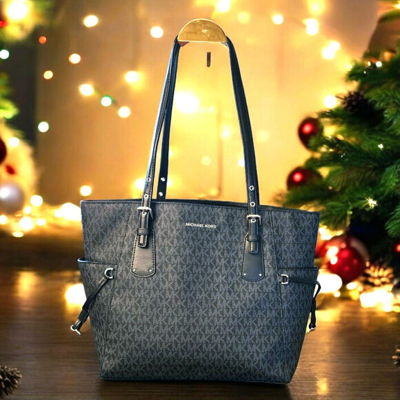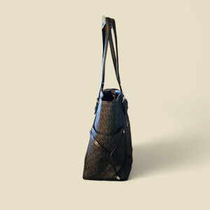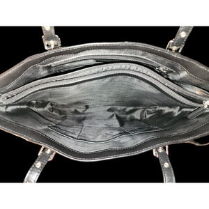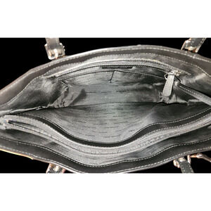 Inside is lined with Michael Kors signature fabric and has two separate compartments divided by a padded zipper compartment. Perfect for small laptops, Ipads, etc. It has eight slip pockets, a key linear, and a side zipper pocket.