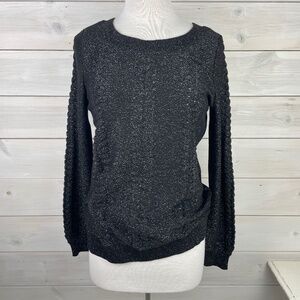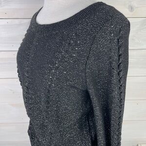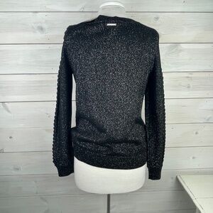 Michael Kors Black and Silver Metallic Long Sleeve Crew Neck Pullover Sweater
