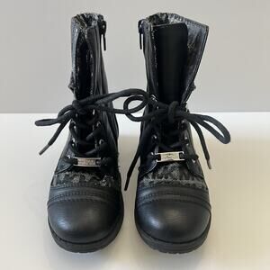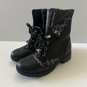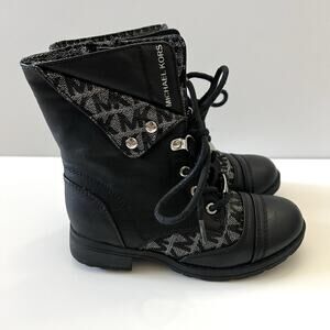 Michael Kors Black Silver MK Logo Zip Tie Combat Cuffed Boots Girl Toddler 11