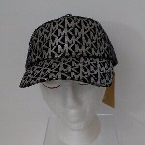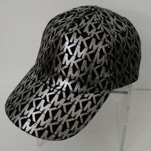Michael Kors Black Silver Metallic MK Logo Baseball Hat Cap
