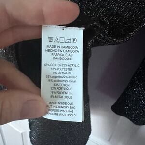 This black sweater features stunning silver metallic threads that catch the light, making it perfect for evenings out or adding a bit of glamour to your everyday look.