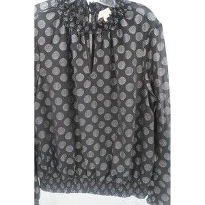 Michael Kors Black & Silver Polka Dot Blouse Smocked Ruffle Mock Neck Size XL