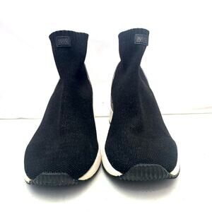 Good used condition! Cushioned white midsole with stretchy black sock boot in a sneaker style. Silver accents on back and pewter rhinestones. Please see all photos for imperfections.
