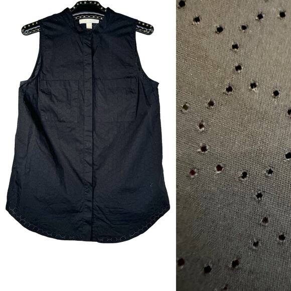 Michael Kors Black Sleeveless Pointelle Button Down Shirt Medium