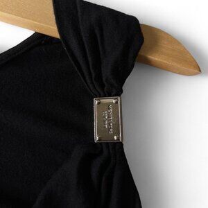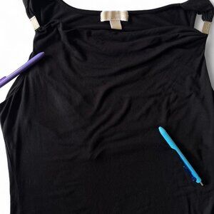 Michael Kors Black Sleeveless Top L Draped Neck Gold Hardware Chic Layering