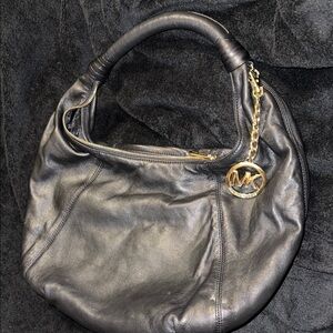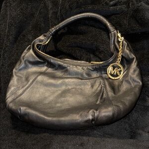 Michael Kors Black Slouchy Hobo Bag with Gold Charm