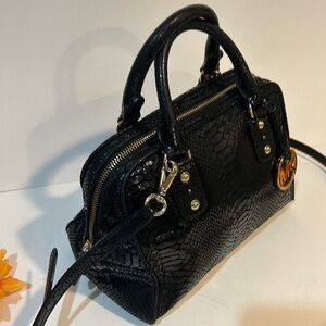 Chic black snake embossed bag. Gold hardware and MK charm. Includes top handle and shoulder strap.