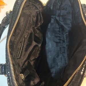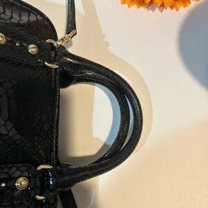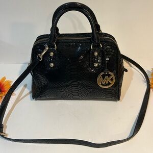 Chic black snake embossed bag. Gold hardware and MK charm. Includes top handle and shoulder strap.