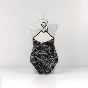 Michael Kors Black Sonoran Palm Logo Ring Halter One-Piece Swimsuit Size 8 NWT