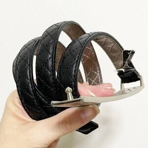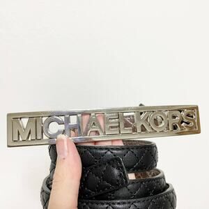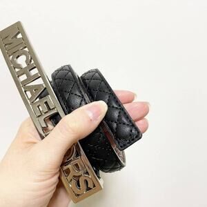 Michael Kors Black Stitched Leather Silver Hardware Belt