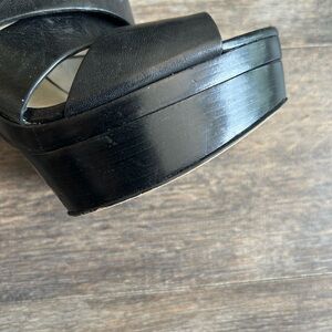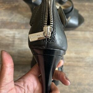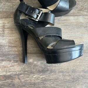 Sleek black strappy design. Perfect for evening wear. High stiletto heel.