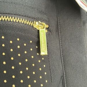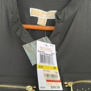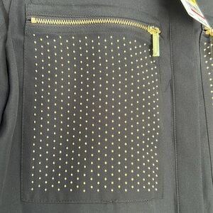 Stylish black button-up shirt with studded front pockets. Features a sleek design with gold accents. Size M. NWT.