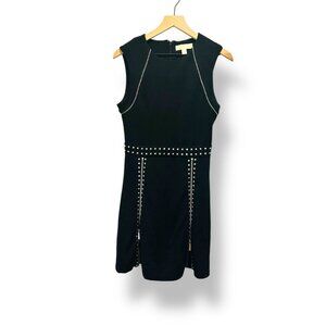 Michael Kors Black Studded Fit & Flare Dress Zipper Detail Goth Y2K Womens Small