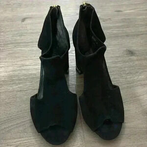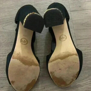 Michael Kors Black Suede Bock Heel Open Toe Bootie / Heel Size 6.5