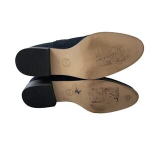 Step up your footwear game with these stunning Michael Kors black suede studded boots. Featuring a soft suede upper, these ankle boots are elevated with bold silver-tone dome and rivet studs along the top, adding a touch of edge to their timeless design. A low stacked heel and rubber outsole provide comfort and stability, making them a versatile choice for everyday wear or an elevated casual look.