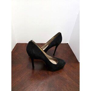 Michael Kors Black Suede Pointed Toe Pump High Heels Gold Accents Size 9.5M