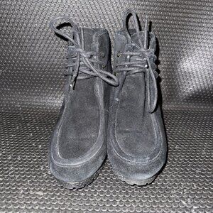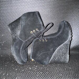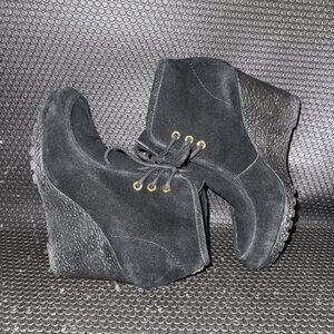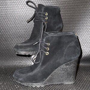 Michael Kors Black Suede Wedge Booties Gold Accent Comfort Shoe Womens Size 6.5M
