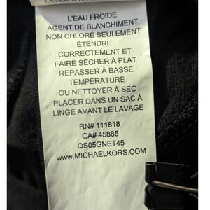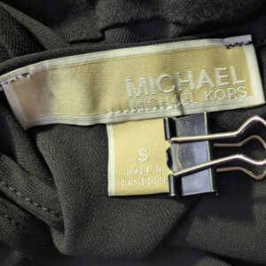 Chiffon hem and shoulders. Gold MK emblem on bottom left