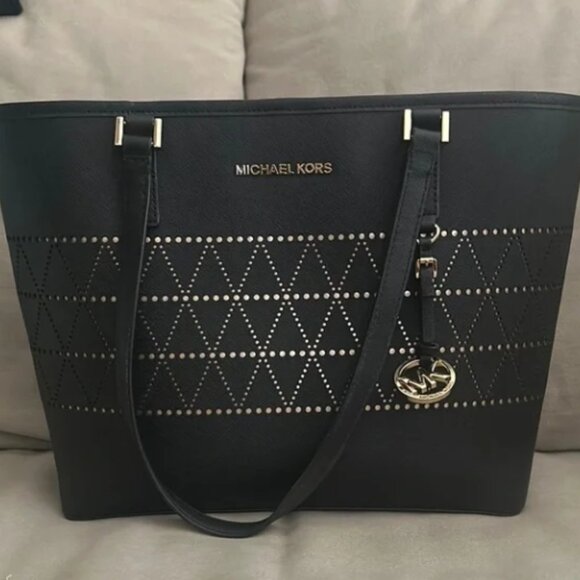 Elevate your style with this elegant unique Michael Kors black tote bag.