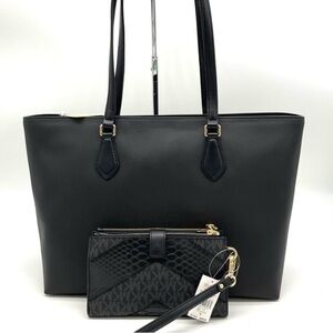 Michael Kors Black Tote with Textured Leather and Gold Hardware