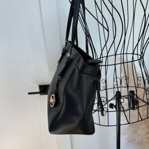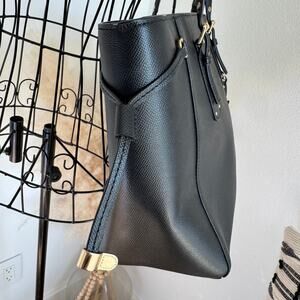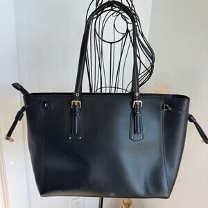 Michael Kors Black Voyager Crossgrain Leather Work Tote Bag