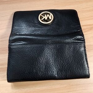 Stylish black wallet with gold MK logo. Perfect for everyday use.
