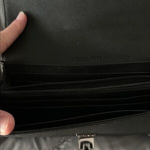 Sleek and stylish, this Michael Kors black wallet is perfect for any occasion. Crafted with elegance, it features a secure clasp and a timeless design.
