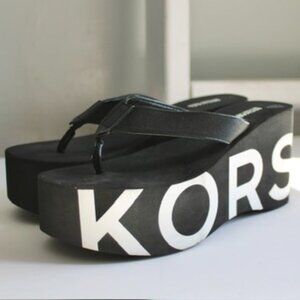 Michael Kors Black White Benny Flip-Flop Platform Wedge Thong Sandals Size 8