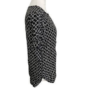 Michael Kors Black White Chain Print Blouse Top Small Zip Back