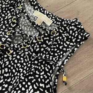 Michael Kors Black & White Lace Up Leopard Print Jersey Dress
