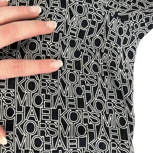 Michael Kors Black White Lettering Viscose Blend Tie-Neck Blouse size XS *GOOD*