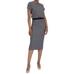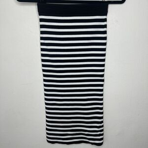 Michael Kors Ribbed Black & White Striped Stretch Bodycon Tube Maxi Skirt