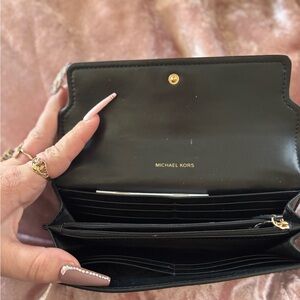 Elegant and stylish, this black Michael Kors women's bag is perfect for any occasion. Crafted with high-quality materials, it features a sleek design and a secure clasp. Has minor dirt spots but excellent condition!