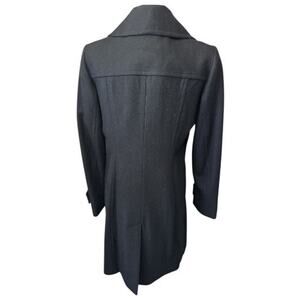 Michael Kors Black Wool Blend Double Breasted Trench Coat Brass Buttons