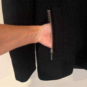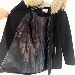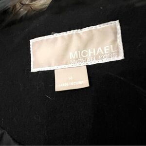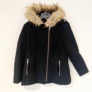 Michael Kors Black Wool Parka Fur Hood Coat Gold Hardware Size 14 Mid Length
