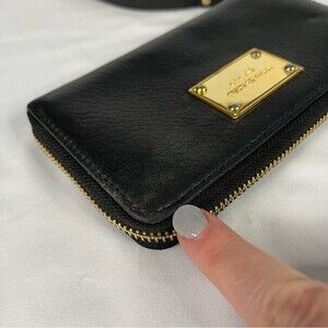 Michael Kors Black Zip Around Compact Wallet Leather Gold Hardware Card Slot