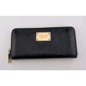 Michael Kors Black Zipper Wallet Shiny Patent MK Zip Around