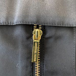 Two pockets with flaps and accented with gold zippers with Michael Kors Logo