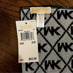Michael Kors Black and Glittery Silver Logo Infinity Scarf NWT