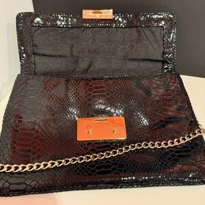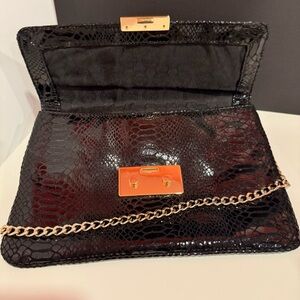 Michael Kors Black and Gold Clutch with Snake Design and Gold Chain