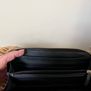 Stylish black patent leather wallet with gold studs. Features Michael Kors logo design. In excellent condition.
