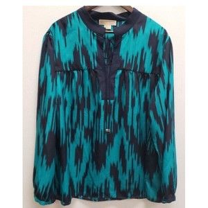 Michael Kors Black and Gray Snake Print Blouse with Gold Zipper Accent