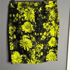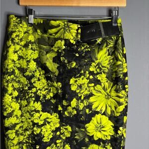 Michael Kors Black and Neon Floral Belted Pencil Skirt Size 6
