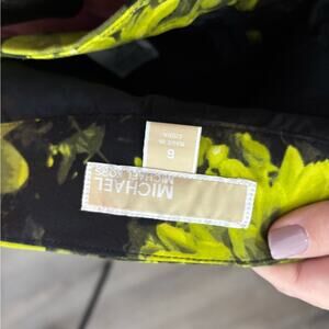 This Michael Kors skirt is a sophisticated and vibrant piece that combines classic tailoring with a modern, eye-catching print. This skirt offers a comfortable fit with slight stretch. The skirt features a bold neon floral print set against a classic black.