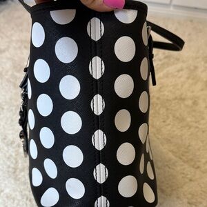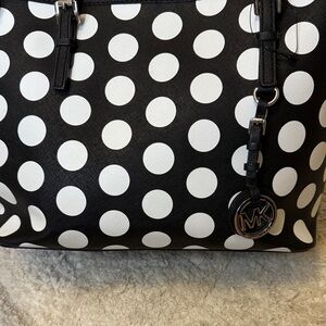 Elegant tote with bold dot pattern. Features sturdy handles and signature MK charm. Ideal for daily use.
