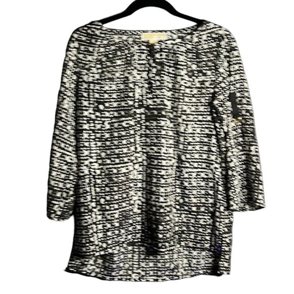 Michael Kors Black and White Geometric Print Keyhole Neck Blouse Size Small